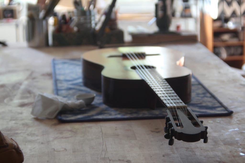 I ended up doing a simple open pores finish with oil. The wood is nice on its own and it ends up sounding so much better—more open and complements the simple honest aesthetic of the guitar. My costumer’s brother is now actively playing it, that’s one of the beauties of our craft, not only do we build life-companions for musicians but give a second life to those instruments that outlive there original owners. One guitar can have so many lives.