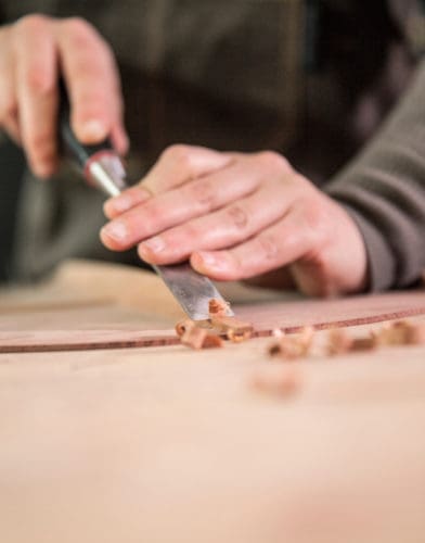 Seventeen years ago in Paris while attending l’Ecole Supérieure d’Arts Graphiques Penninghen, I happened to live two blocks away from the Ateliers Maurice Dupont on avenue Daumesnil (their operation is in Cognac). I walked by their shop everyday on my way to school. I was a furniture and industrial design major at the time and was fascinated by what I saw, especially since I have been playing classical guitar since I was a child. This resonated a lot with me and definitely planted the seed in my head. Then school was very demanding and I didn’t have time to play music much and forgot about the idea. I went full-fledge into a design career where I dealt with a lot of woodworking and innovative designs in multidisciplinary design firms. I started playing music again. Naturally the idea of building guitars came right back to me as this discipline combines all my passions. It was a very natural progression. I was fortunate to find Dan Collins, a luthier in the South County of Rhode Island, from whom I got old school training, which focused on acoustic guitars. I was daydreaming about this for too long to not do it. I quit my day job to embrace guitar making fully.