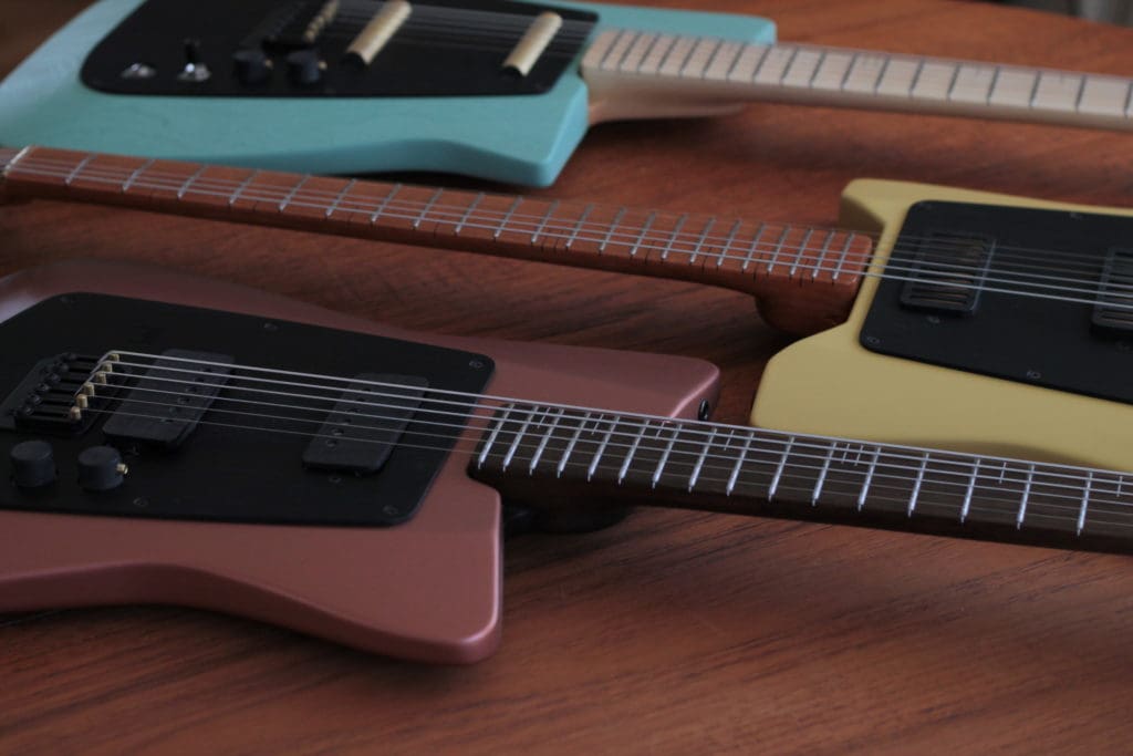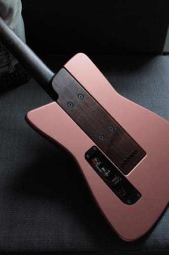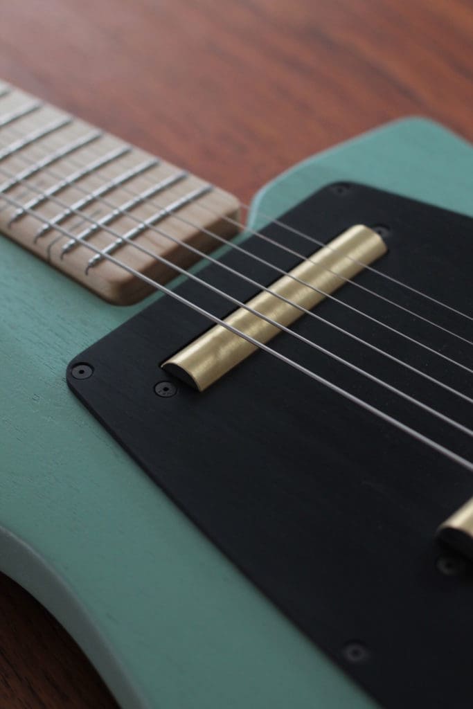 FB: Most of my influences comes from outside the guitar world, mostly industrial design and architecture. The biggest influences would be Jean Prouvé, Dieter Rams, The Bauhaus and Scandinavian design in general. I love colors from the ’50s and ’60s, faded pastels and other muted colors. During my recent trip to Berlin, I fell in love with those vintage buildings’ colors from the Neuköln neighborhood. I like simple things that don’t look fancy–to me a guitar is a tool, not an art piece with super fancy and flashy finish. Luthiers like to show off their skills; I prefer to build quality and clean-looking instruments.