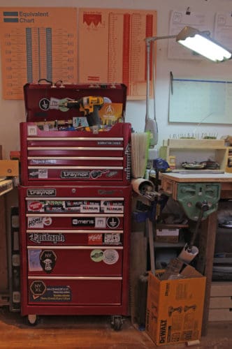 FB: For two years now, I’ve been lucky enough to have my own shop in the basement of my house. It’s small but very practical. I was sharing a 1500 square foot shop before and I was always looking for my tools. Now all my tools are within reach. It’s a 10′ x 22′ space that revolves around my two table saws and inversed router table. I have a bench for setups and assembly, a few other tools around the perimeter of the shop–everything has to be well-organized or it can become a real mess. As I like to say now, clean shop makes a clean build, and a clean build is a happy build.