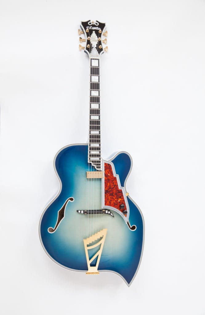 VB: Well, I’m not kidding when I say I am excited about each project, but a few years ago while I had my shop in New York City I was hired by the D’Angelico Company to do some reproduction work and to design a series of instruments for them based on classic vintage D’Angelico guitars. So the research and design process for those, as well as the guitars that came out of that period were definitely super cool and exciting stuff to work on. D’Angelico guitars are about as difficult as you can get as far as complexity for archtop guitars – tons of binding, pearl work and intricacy – so by the end of the project I was ready for an easier life. We made about 30 guitars for them and that was certainly an educational and rewarding gig. They gave a lot of those guitars as gifts to some really famous people so that was pretty cool as well.