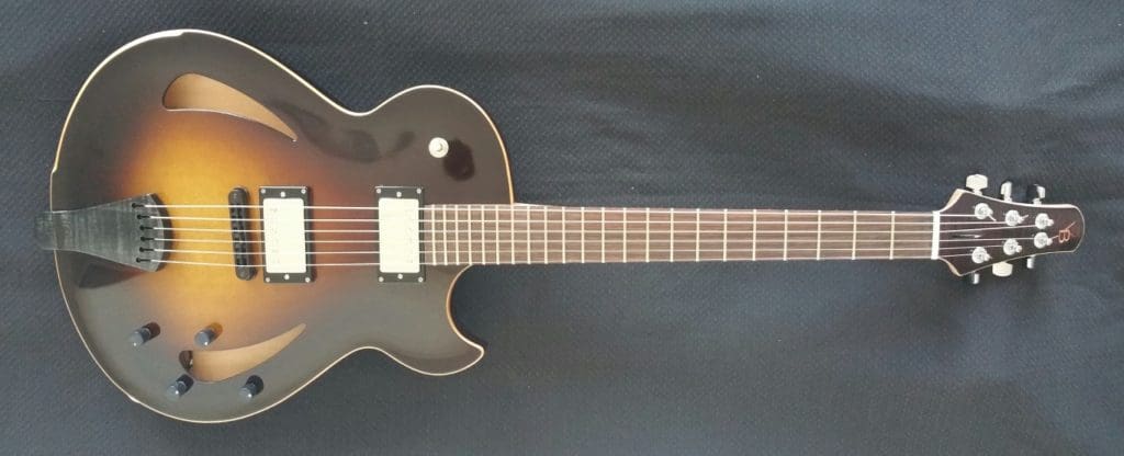VB: I think the designs I have come up with for archtop and semi-hollow guitars are very personalized and have my unique style. I try to be a forward thinker, so while I do some traditional things I never hesitate to try new materials, designs and methods of work. As far as philosophies on materials go, I’m pretty simple. I prefer lighter-weight woods or less dense species. I’m open to ideas, and try all kinds of things. I do really like woods from Europe for the bodies on jazz guitars, so that’s traditional. I prefer mahogany rather than maple for necks in most instances, just because of the lighter weight and better head / body balance.