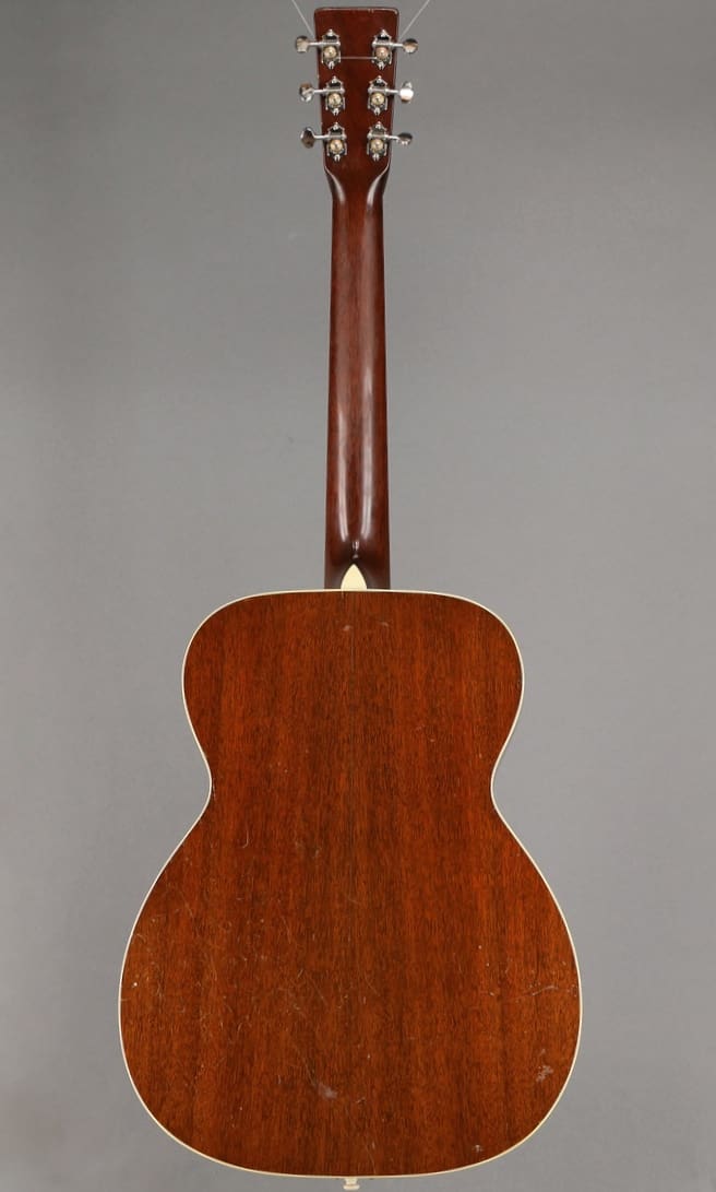 A while ago I wrote about a very nice Martin C-1, Martin’s first attempt to enter the archtop guitar market. The first version of the C-1 was introduced in 1931 and it had a round soundhole, a style that was out of fashion pretty much the day it was built. Martin realized their miscalculation almost immediately and in 1933 they introduced a version of the C-1 with f-holes. (They made both versions concurrently until they discontinued the roundhole style in 1934.) Viewed from the front the new C-1 looked pretty much like the offerings from Gibson or Epiphone but when you flipped it over it had a flat, mahogany back rather than a carved maple back. The C-1 also measured about 15 inches across the lower bout, making it an inch smaller than the early 1930s Gibson L-5s and Epiphone De Luxes. In a way, the C-1 was a 000-18 with a carved top.