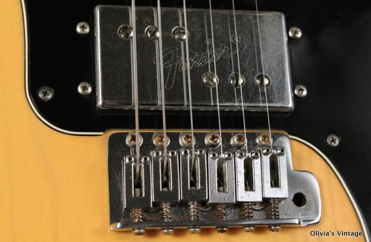 Fender tapped into the talents of Seth Lover (the man who also developed Gibson’s humbucking pickup) to design their Wide Range (hum bucking) pickups. While the unique aspects of the design would require an article of their own (check out this excellent and comprehensive Wikipedia entry), let’s say that they were engineered to offer the hum canceling niceness but with the clarity and bite of a traditional Fender single coil. The Wide Range units were certainly a tone success, and these great sounding pickups fall into a niche that fits nicely between a bell-like Fender single coil and a midrange driven Gibson ‘bucker. The most famous Wide Range user was Keith Richards throughout the ’70’s, and these pickups have developed a strong following in the ensuing years. The Wide Range picups were also used in the short-lived semi-hollowbody Starcaster, which you can read about here.
