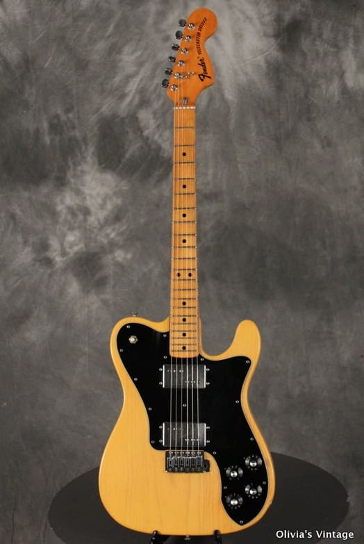 The stark, direct and simple design of the Fender Telecaster is seen by many as the ultimate example of the electric solid body guitar, but it is a common criticism is that the non-contoured slab body can dig into the ribs of the player. The Telecaster Deluxe, introduced in 1972, added the contours of the Stratocaster into the much-loved Telecaster shape. While a fixed bridge was standard, a small percentage of the model (as seen on today’s Catch) came standard with another Stratocaster innovation- the spring driven vibrato. The Deluxe was truly one of the better design ideas of CBS era Fender, however the guitar was also fitted with a pair of Fender humbucking pickups which are certainly a giant leap away from traditional Tele tone.