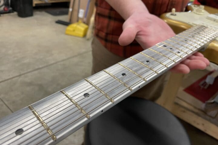 I remember when Travis Bean guitars first appeared in the mid-1970s. I had just started playing guitar and I was in a local guitar store buying my first electric (a Carlos Les Paul copy) when they took delivery of their first Travis Bean order. I don’t remember the model number but I do recall the guitar’s body was made of koa, the first time I had ever seen that wood. (Boy, that sure was a day of firsts.) The salesman wouldn’t let me play it then, but over the years I did get play quite a few of them and I was always impressed with the way they played and the way they sounded. The aluminum neck never felt weird to me, although a lot of players didn’t care for it.