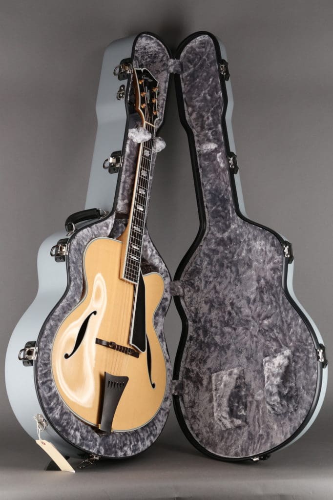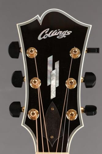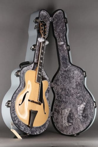 It bears some of the touches that became Collings trademarks – most notably the haircut headstock and parallelogram inlays – and is priced at $21,000 with two hardshell cases (the original TKL and a Calton), but Gryphon has some thoughts about discounts if only one case is wanted (though they strongly recommend the Calton if the guitar is being shipped).