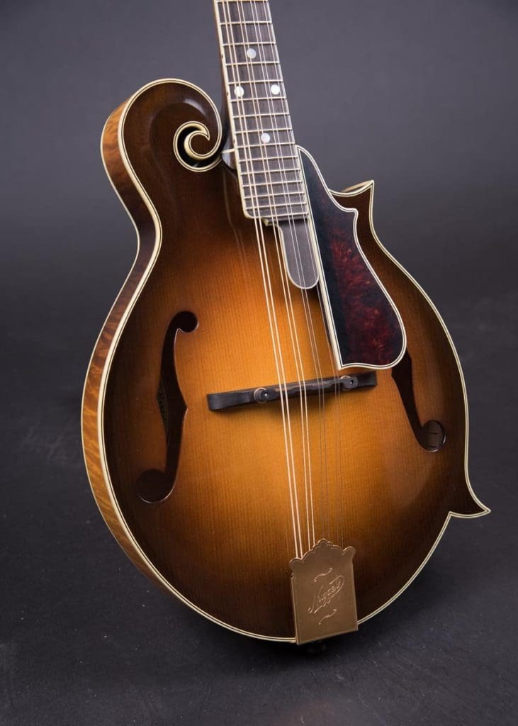 Next up on the Catch of the Day’s journey through the pages of the Fretboard Journal: one of Mike Kemnitzer’s Nugget Mandolins. If you’ve read the profile on Kemnitzer in issue 38 you know all about his meticulous craftsmanship and his facile merging of the cutting edge with the old school. He has been building some of the finest mandolins available, going back 44 years. His F-5 mandos hew absurdly close to the Loar tradition–Mike has delved deep into the finer details of Loar’s mandolins and is situated as well as anyone when it comes to recapturing those instruments’ finer qualities. As it happens, we found a couple of examples available at Carter Vintage: an older (1979), attractively worn example that belonged to Don Julian (who made a cameo appearance in the aforementioned profile), and a mint-looking “Deluxe” model from 2005. Although the older instrument certainly has some serious character and a more attractive price tag, we were drawn to the absurdly clean Deluxe and its gorgeous salvaged tonewoods.
