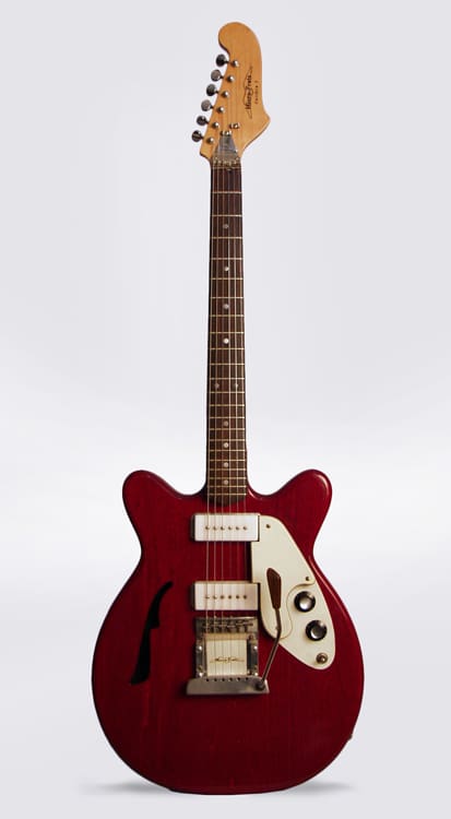 Micro-Frets guitars were only made for a few years in the late 1960s and early 1970s. Their most interesting feature was the Calibrato, a vibrato unit that allowed the player to raise or lower the pitch of a chord while remaining in tune. Micro-Frets were well made, and sounded quite good, but they never really caught on in a big way. This fine Calibra I can be found at Retrofret for $1750.