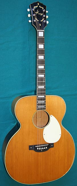 Kay built inexpensive guitars, banjos and mandolins for a variety of catalogs and department stores from the 1930s through the 1960s. While their instruments weren’t quite as well made as the offerings from Gibson or Martin, Kays had a cool vibe all their own and actually sounded pretty good. This K-27 is basically a budget variation of the J-200 and now, as then, it only costs a fraction of the price of the fancier Gibson. You can find it at Intermountain Guitar and Banjo for $1500.