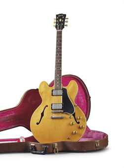Gere has a point about the terminology. “Collection” conjures in the mind’s eye rows of pristine, vintage guitars, often with multiple, perfect examples of identical instruments. To be sure, Gere’s, uh, assemblage, features some perfect instruments. Consider Lot Number 93: the minty, blond, dot-neck, 1960 Gibson ES-335. But, most of these guitars show serious play wear, which, Gere is careful to point out, “is in the right places, showing that the guitars were really played.” Gere adds that “all of these guitars are perfectly set up. They play beautifully and they sound great. They’re just great instruments.”