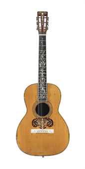 Gere tells me that he “can’t think of a single guitar I bought just to own it.” He bought them all to play and didn’t let concerns about collectability deter him from having guitars refretted, necks reset, or doing whatever it took to make them player’s instruments. He’s right: these aren’t museum piece collectibles. They’re just a bunch of really good, really cool guitars. Check out Christie’s glorious, 138 page catalog (a collectible publication if ever there was one) or, if you failed to order one (I hope that you learned your lesson!), check the online version. It’s a very well thought out, uh, accumulation. The catalog breaks the instruments into “The Golden Age,” “The Post War Years: The Age of the Electric,” “The Age of Rock,” and “Contemporary Classics.” The first entry is a way cool 1902 Gibson Style 0 with scroll and cutaway and the final entry is a 1977 reissue goldtop Les Paul, a guitar Gere “purchased while working on the film Pretty Woman.” It was the first Gibson Les Paul guitar he ever acquired.