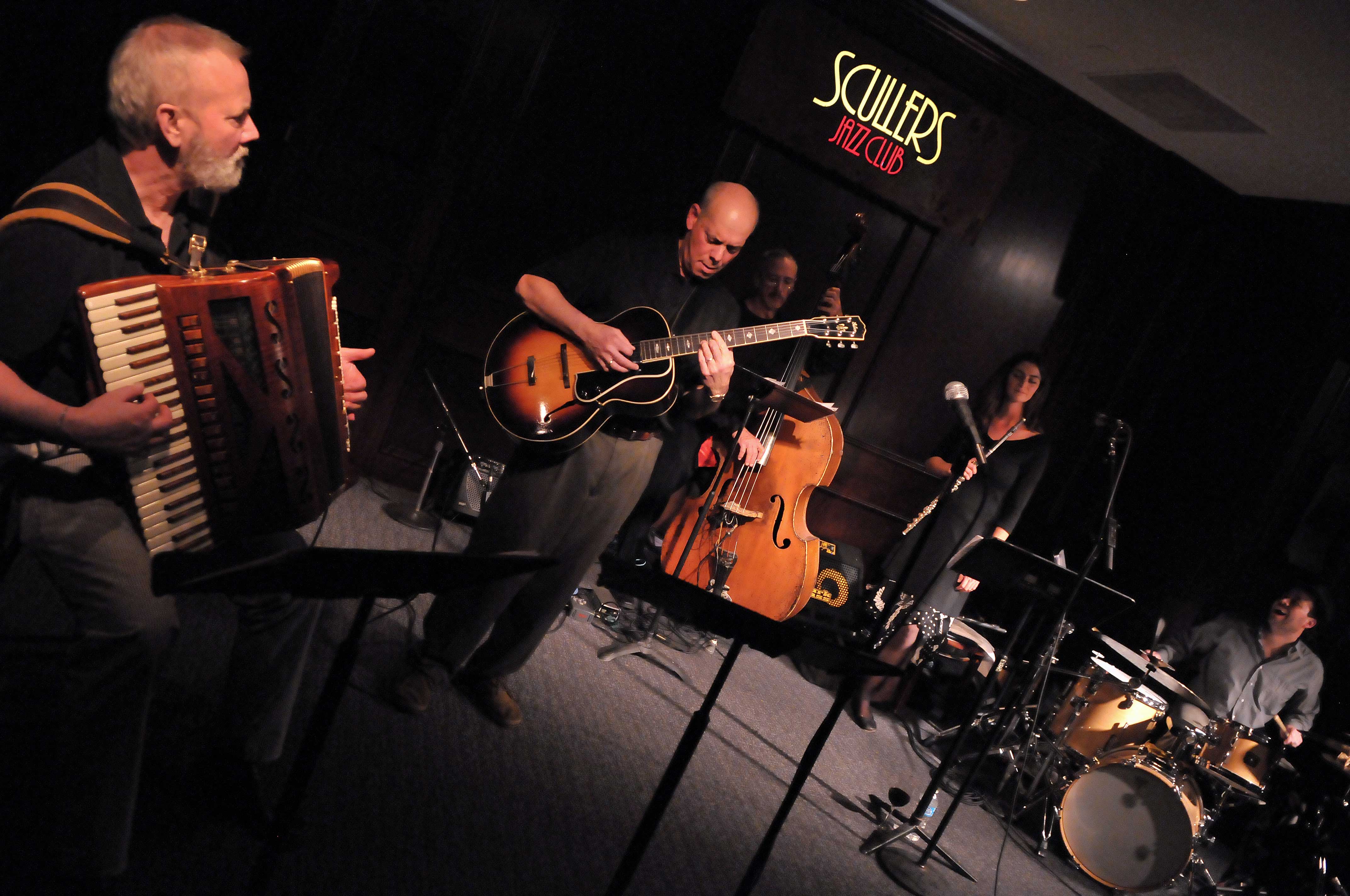 Of course, the compositions without execution wouldn’t produce such stellar music.  Collaboration is at the heart of this project. Stein and Mingo carefully selected their dancing partners, each of whom adds a subtle flourish while still thoughtfully serving the overall choreography. We could randomly access any moment in this collection and appreciate the contributions of each musician, but I'll take this opportunity to examine another of my favorite compositions, Stein's Recoleta. From the second bar, accordionist Evan Harlanplays imaginative, understated phrasesthat compliment Stein's statement of the melody while leaving space in the music for the other players. JohnLockwoodlays down a minimalistbottom end thatis so beautiful and moving it’s almost impossible to imagine the composition sans bass.  Rebecca Kleinmann’s sinuous flute floats just above the dance floor, weaving and bobbingin a way that both tantalizesand deepensthe contemplative ambiance. Mingo, providing the dance floor itself,mesmerizeswith a delicate tapestry of musical textures. Breathing together, the musicians create the deepest groove imaginable.
