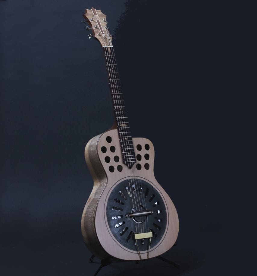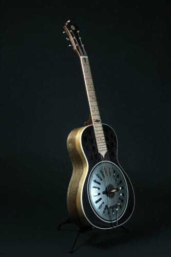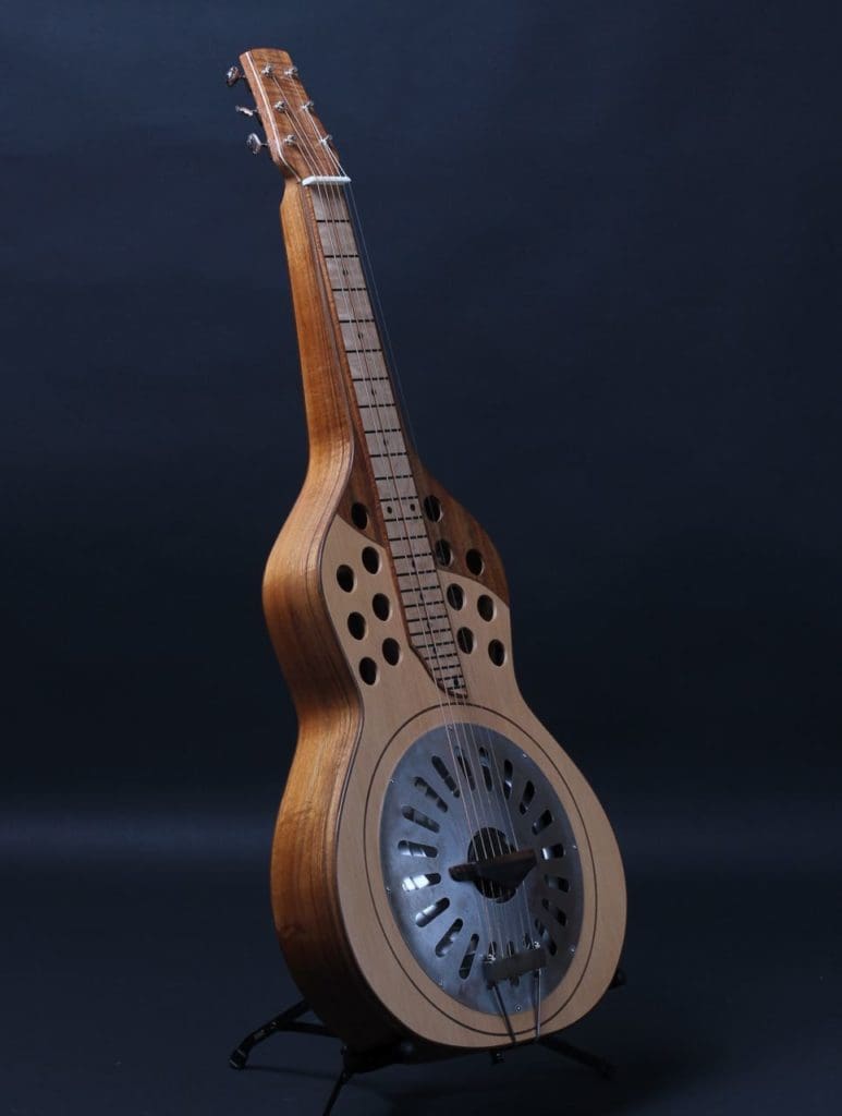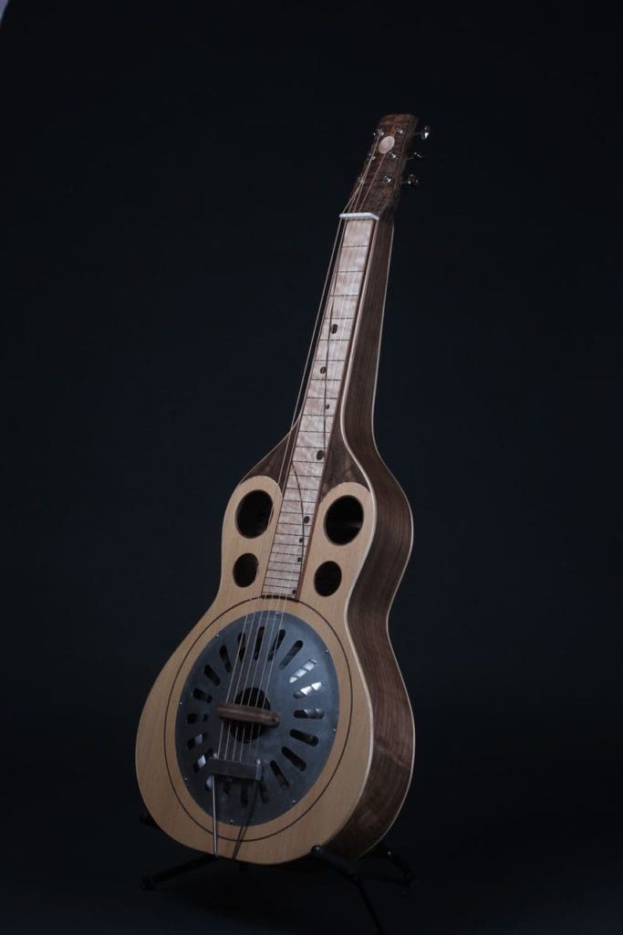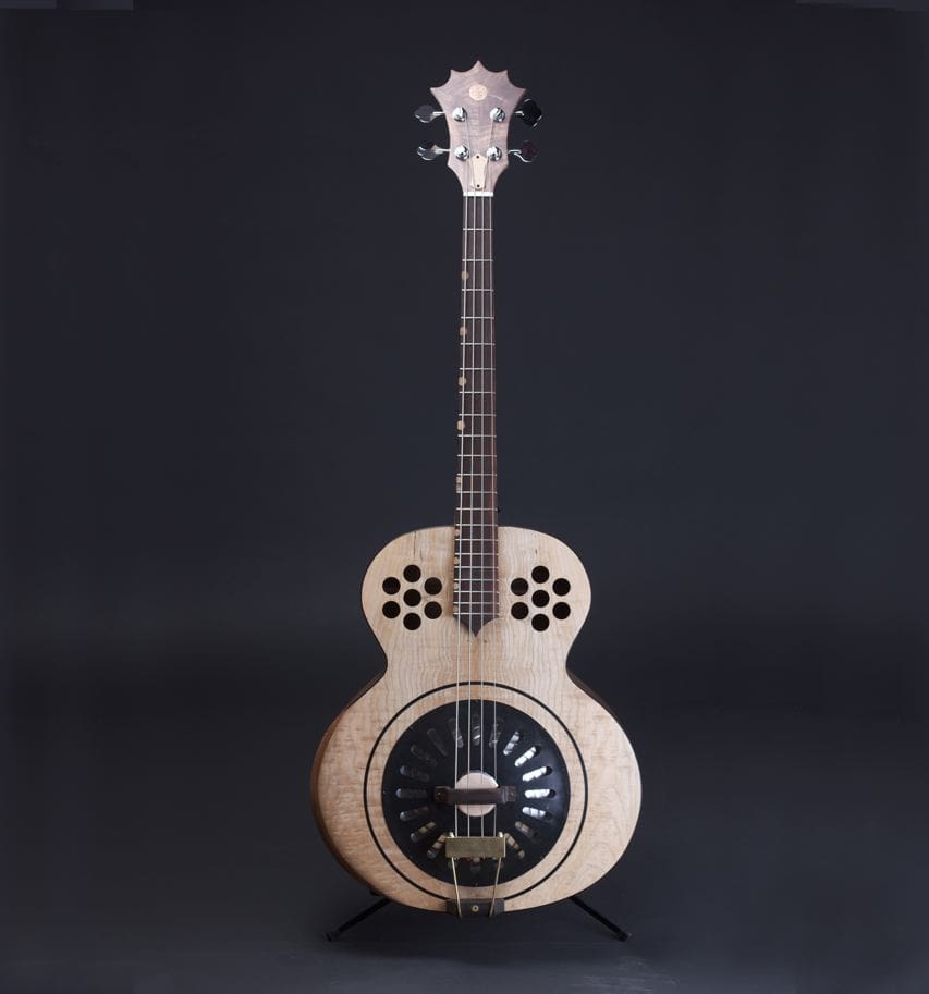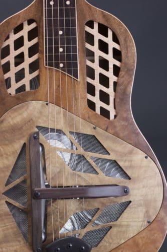 I have always made things, from a cardboard guitar in 1976 when I was 12 (inspired by the UK punk movement, but too young to go to the pub!) through surfboards, skateboards, windsurfing holiday centers, furniture, light fittings and finally my own house and shop. I also happily made my living playing music, until the economic crash forced me into working for MyaMoe Ukuleles here in the Columbia Gorge. I ended up re-jigging a lot of the work flow and I also produced most of the parts that were assembled in the main shop. Now I build mostly custom resonator instruments to order, and some Weissenborn style lap guitars — along with other things that find their way into my workshop. I’m most interested in the next thing I’m about to do and keen that no two instruments be the same. I am enjoying the goal of louder but better tone from a wooden resonator instrument — particularly how I can get a regular single cone guitar to sound as good as my single cone Weissenborn lap style guitar, which I love.