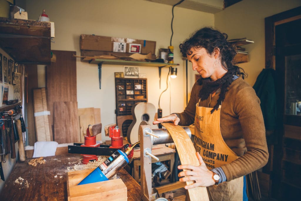 Check out Aviva’s website for information about ordering (she builds about a dozen instruments each year) and to check out some videos of her guitars in action.