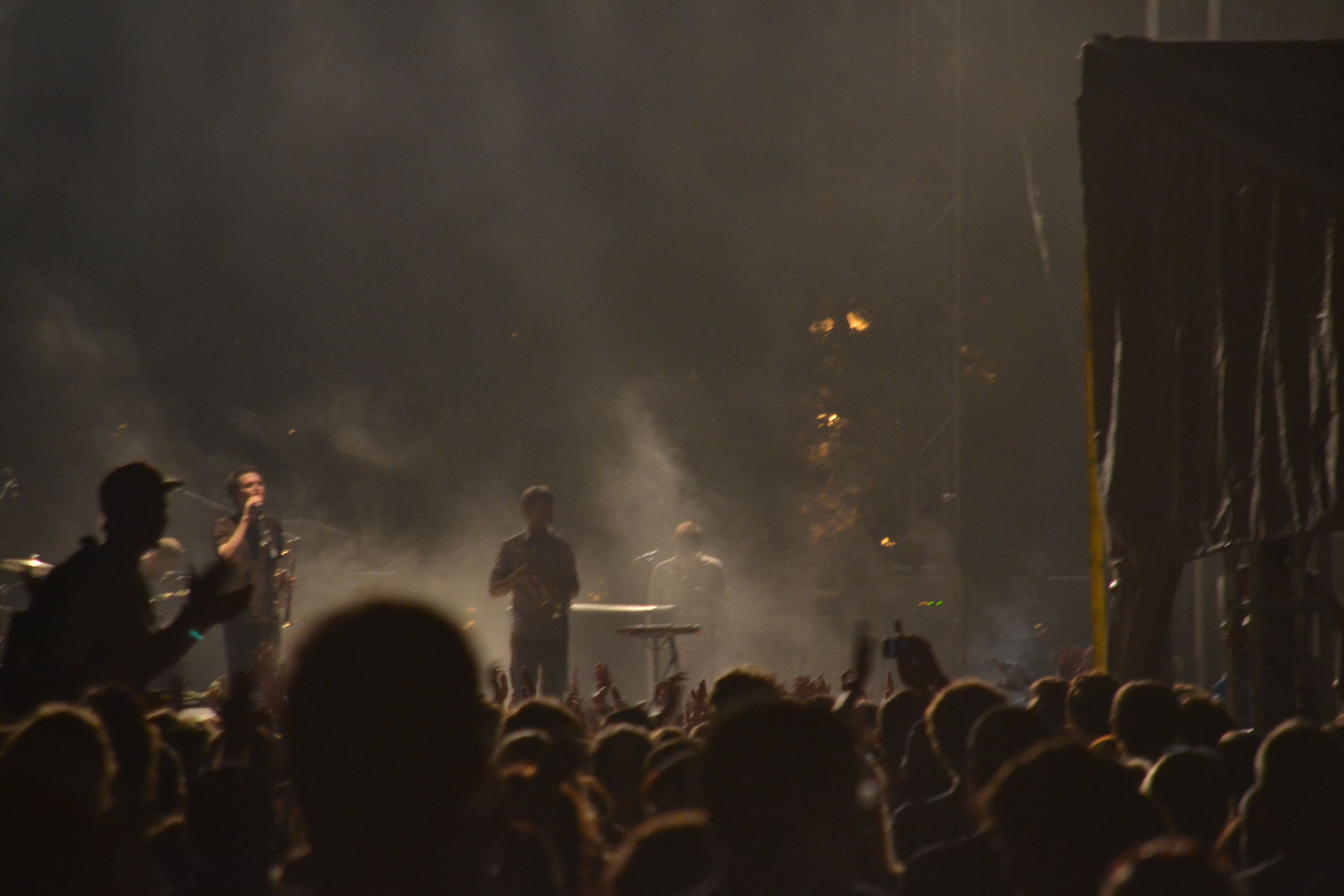 Dark approaches and it’s time for the two headliners. I hit My Morning Jacket first. They’ve drawn a big crowd seeking straight-ahead rock and roll, and the crowd isn’t disappointed. Though, maybe to make the leap to stadium headliners, the band has cushioned everything with a loud, synth backdrop and there’s that too-loud bass drum. Still, they do play their full allotted time, don’t talk about their outfits, and thrill the crowd by closing with “Holdin’ on to Black Metal” and “One Big Holiday.”