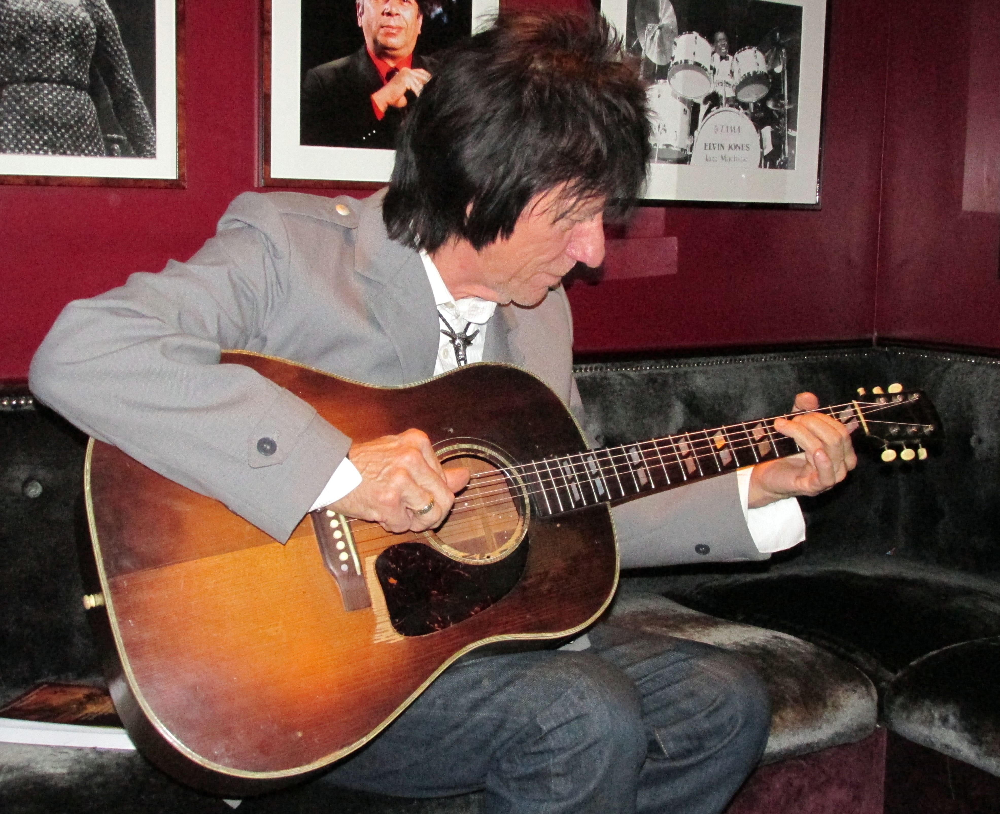 Beck plays a couple of tunes and then hands the guitar back and thanks me. As I hand it over to another of the night’s musicians, guitarist Nicholas Meier, who is in Beck’s recording and touring band, Beck says, “You can feel the ladies handiwork in that guitar.”