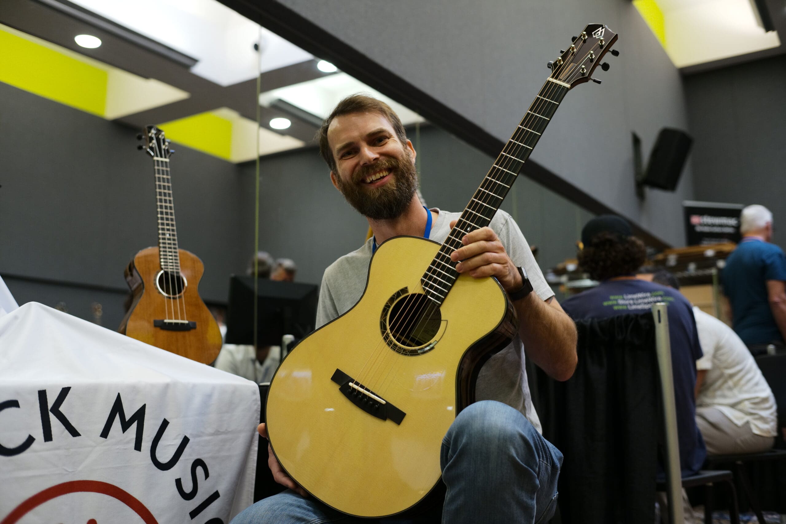 Saturday night concert with Tommy Emmanuel. Pre-show, Tommy was spotted jamming in the Martin booth; he was also interviewed for a forthcoming FJ Podcast. Photo: Isaac Jang