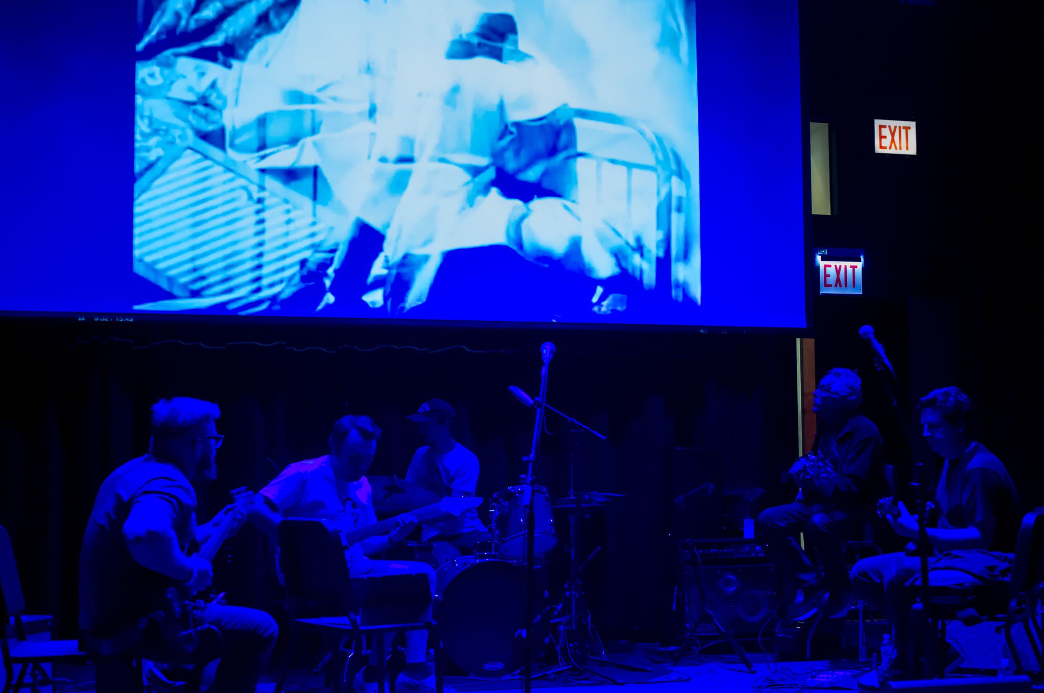 Via Mardot was scheduled to score the stop-animation silent film The Mascot at the Summit. When she was unable to attend, Mike Adams, Duncan Price, Nick Loux, Eric Garcia and Josh Scott stepped up and live scored Un Chein Andalou on the spot. Photo: Brian Fisher