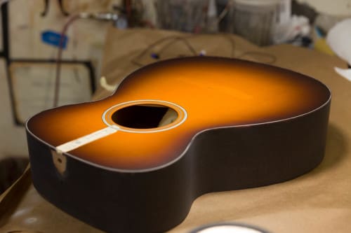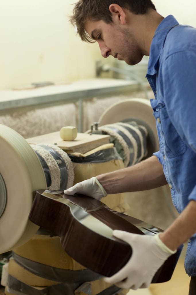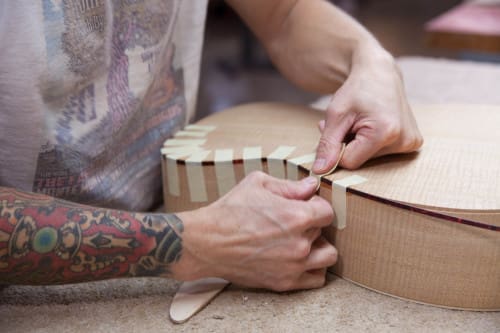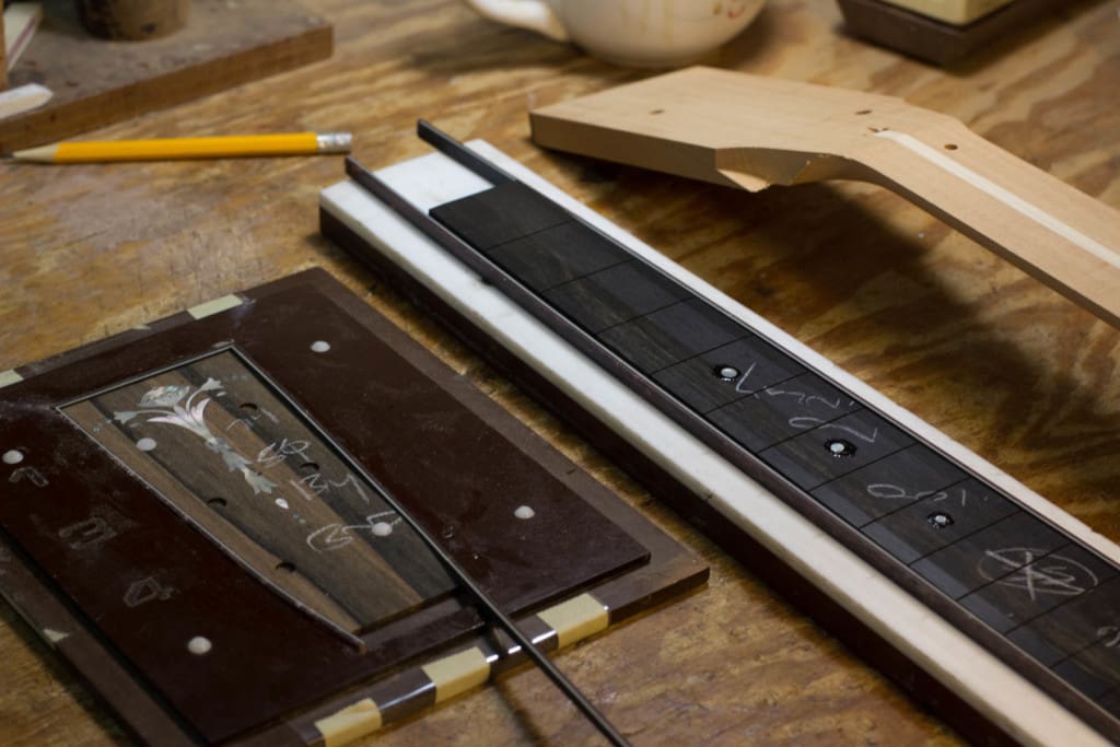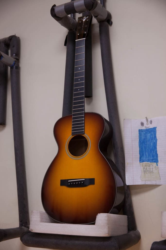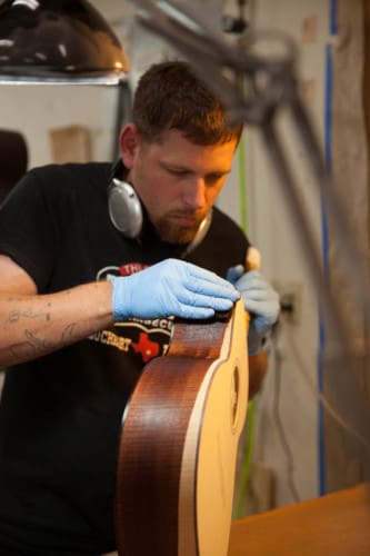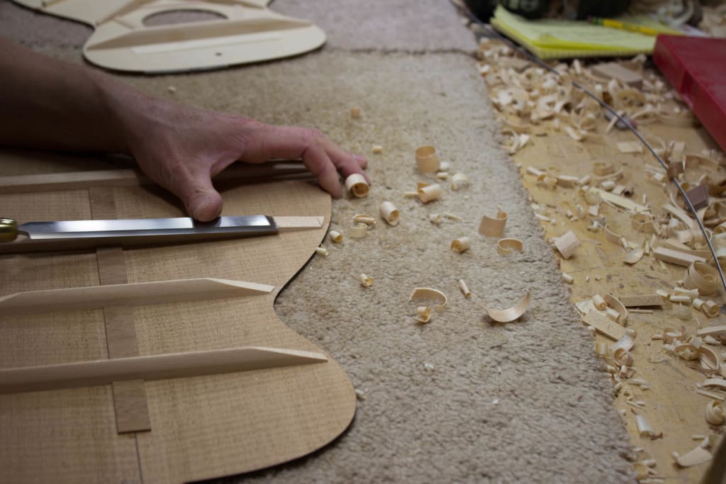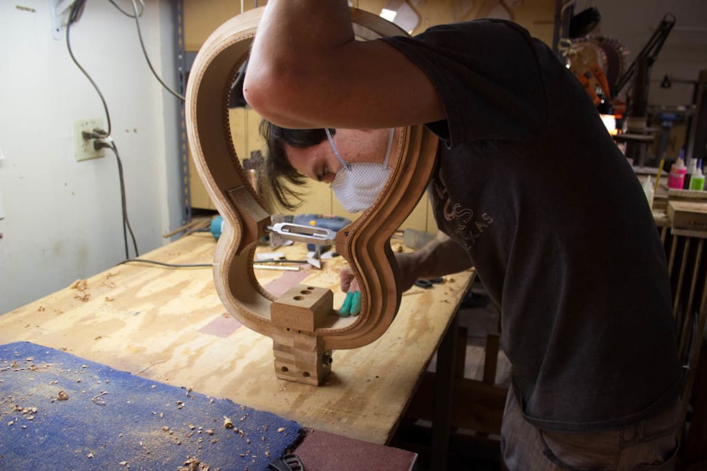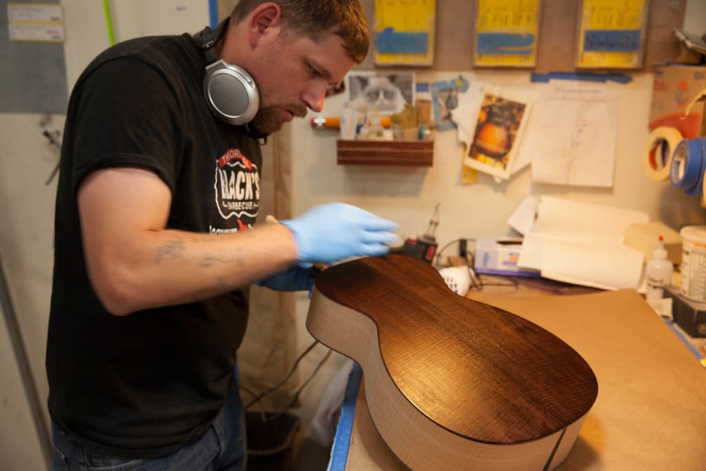 Special thanks to Steve McCreary for the hotel and food advice, Bruce VanWart who went deep into the Collings wood stash to find just the right set of mahogany and Alex Rueb for copiously documenting the process from start to finish (and I do mean finish… right up to the sunburst spray and nitrocellulose clear coat).