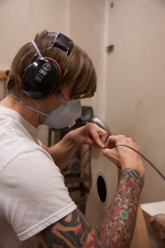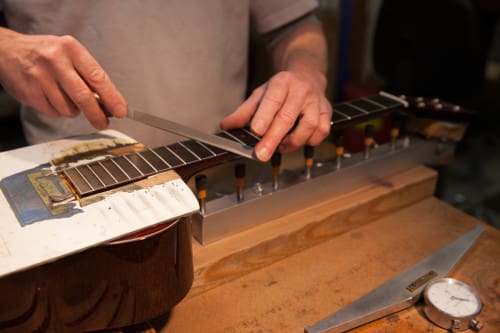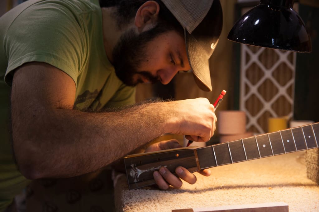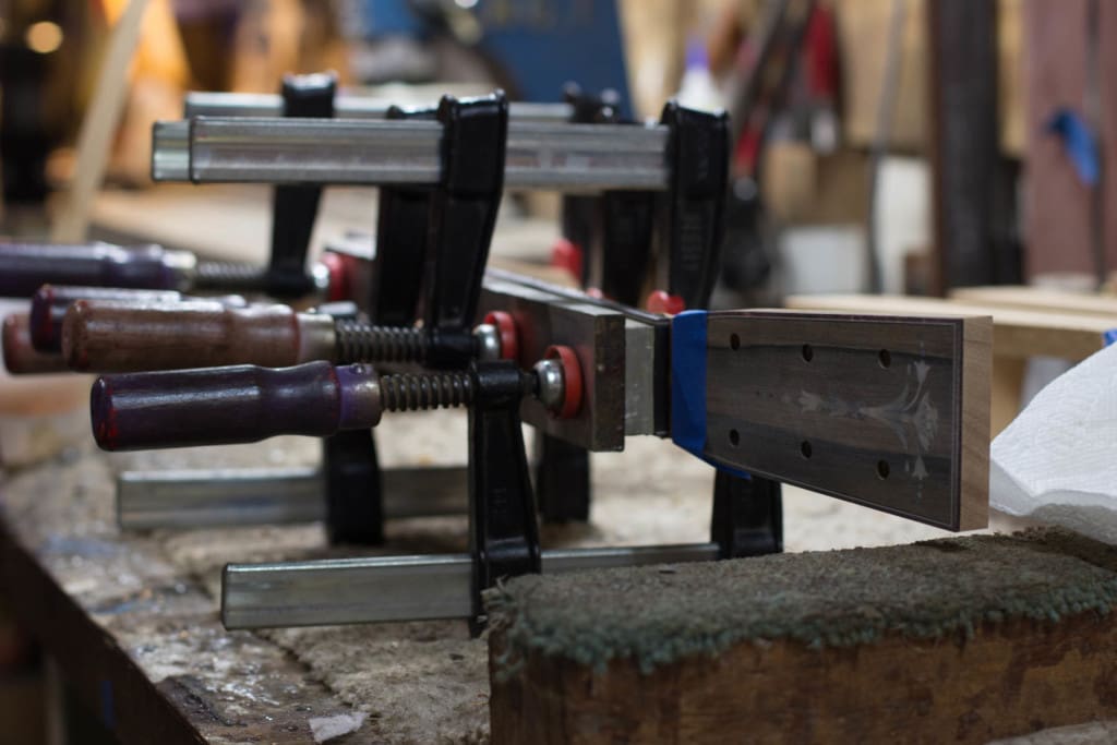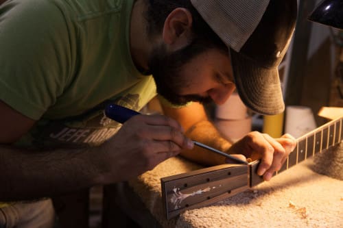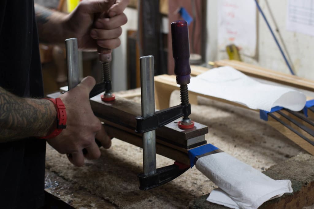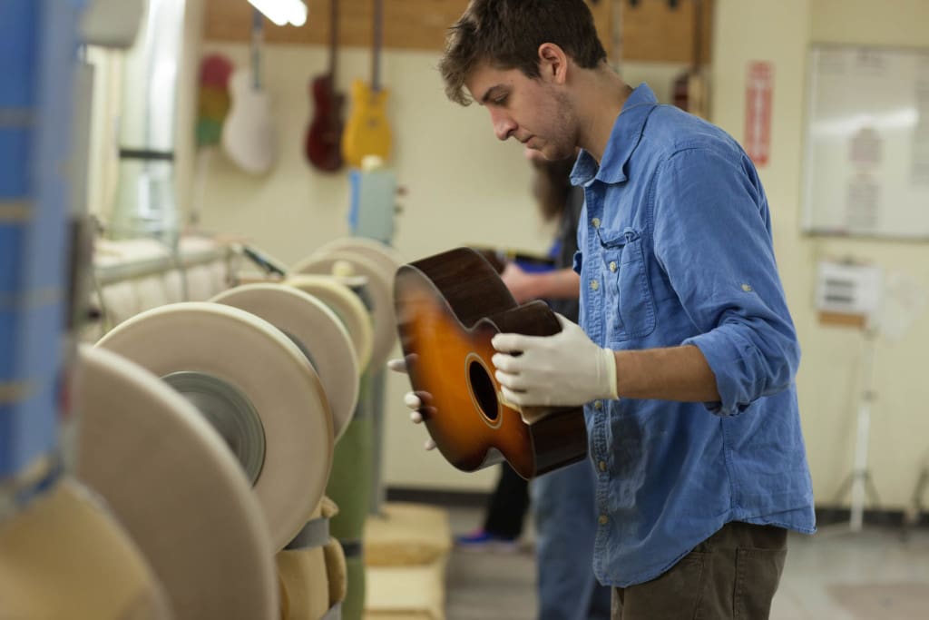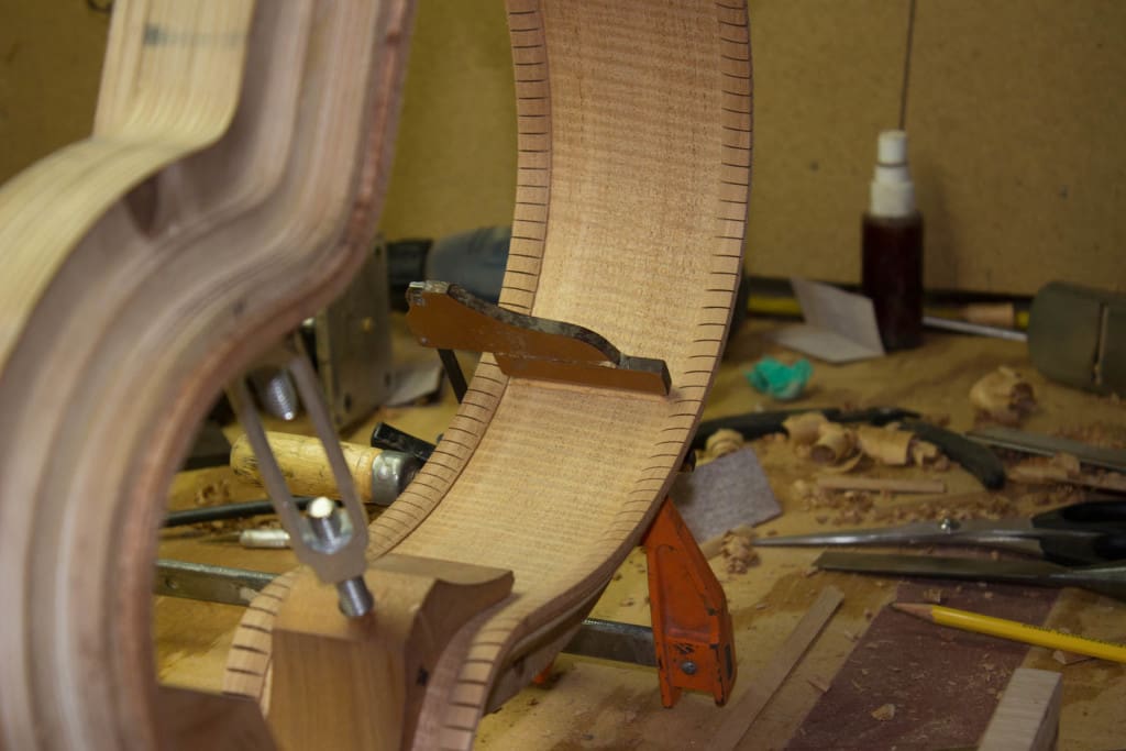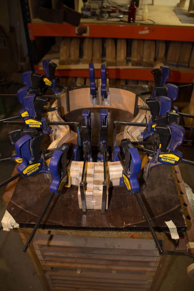 Special thanks to Steve McCreary for the hotel and food advice, Bruce VanWart who went deep into the Collings wood stash to find just the right set of mahogany and Alex Rueb for copiously documenting the process from start to finish (and I do mean finish… right up to the sunburst spray and nitrocellulose clear coat).