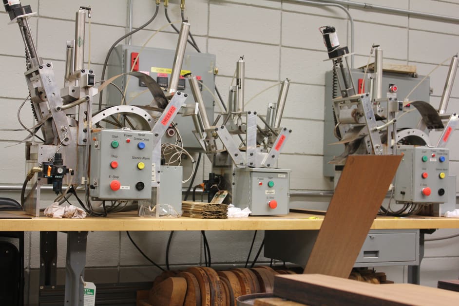 Martin doesn’t produce their strings at the Nazareth facility but they test and prototype them here. Here is a guitar string machine.