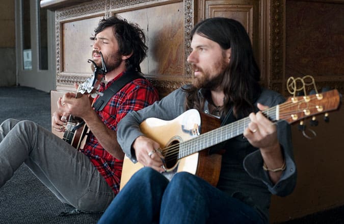 “We played a lot of outdoor, mic-yourself scenarios,” Scott offers, “and getting the crowd for us demanded a lot of volume and a lot of energy. Projection was key. It’s almost like Broadway singers: We got on the streets and just projected, projected. When you’re live on the street, tone is the last thing you need to worry about; you just need to get the crowd. Banjo, as an instrument, is a great tool for that, because it is very abrasive and very loud, and guitar helps set up a platform.