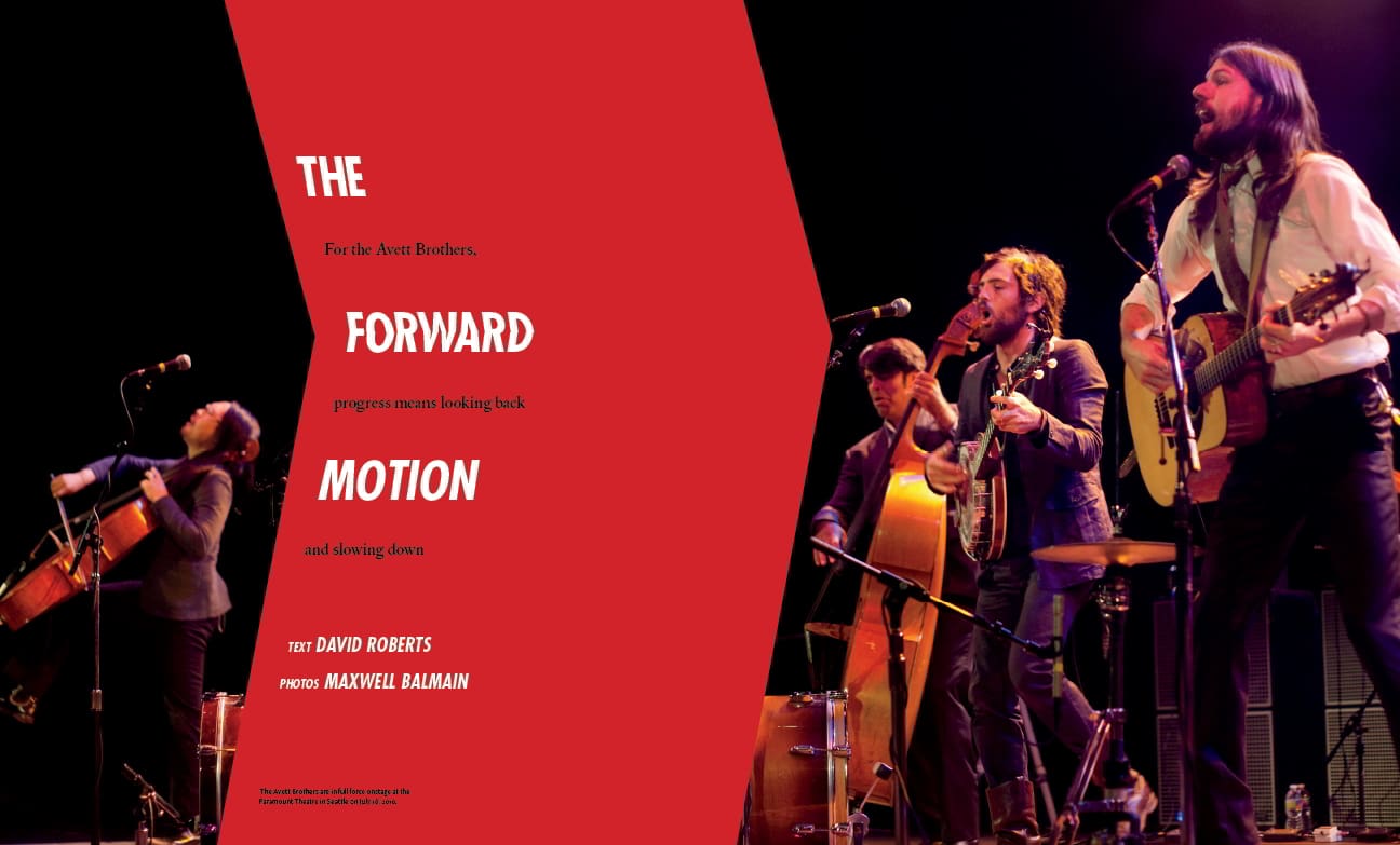 On a sunny July afternoon in Seattle, the Avett Brothers graciously deliver a private acoustic performance in front of the Paramount Theatre. “What’s the first song you ever learned to play together?” they are asked. Scott squints for a second, glances at Seth and says softly, “Well, this is one we’ve known all our lives.” They sit down on the sidewalk, lean back against the wall, close their eyes and play the first chords of “Signs,” a song their father wrote and recorded in the early 1970s. As the song gets going, they slip right back into street-performance mode–projecting, projecting, getting the crowd. Pedestrians begin to gather. Over to the side, Bob Crawford taps his foot and grins like a kid on Christmas–like he couldn’t believe his luck.