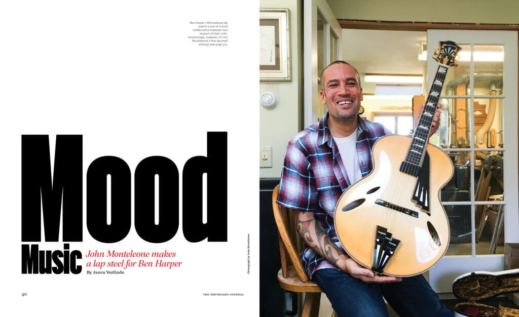 “I think I could’ve pushed John to do a Weissenborn or a D’Angelico replica, but what was most important to me was attaining that cross-pollination of archtop and flattop. That’s what I wanted and he nailed it.” — Ben Harper