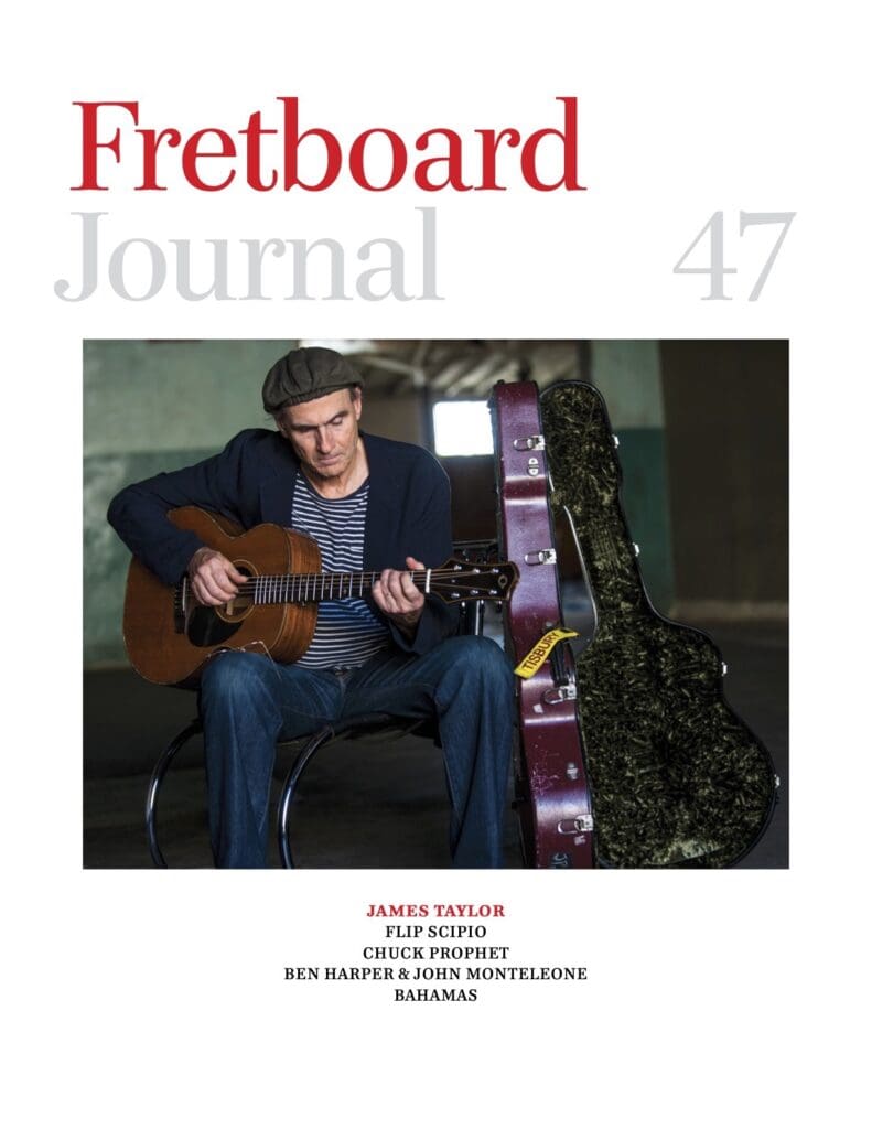 Say hello to Issue 47 of the Fretboard Journal, another cover to cover journey into the world of the finest creators and artists in our little fretted world. This issue travels from the sheltered waters of Narragansett Bay with James Taylor to far reaches of the Cuba with Flip Scipio, covering unexpected pandemic projects from guitarist-turned-artist Mason Stoops and the socially distant grocery shopping strategies of Chuck Prophet. We’ve got the wild memories of luthier David Wren, tributes to lost heroes Tony Rice and Eddie Van Halen, the story of a stunning collaboration between Ben Harper and John Monteleone plus all the much, much more you’ve come to expect from us…