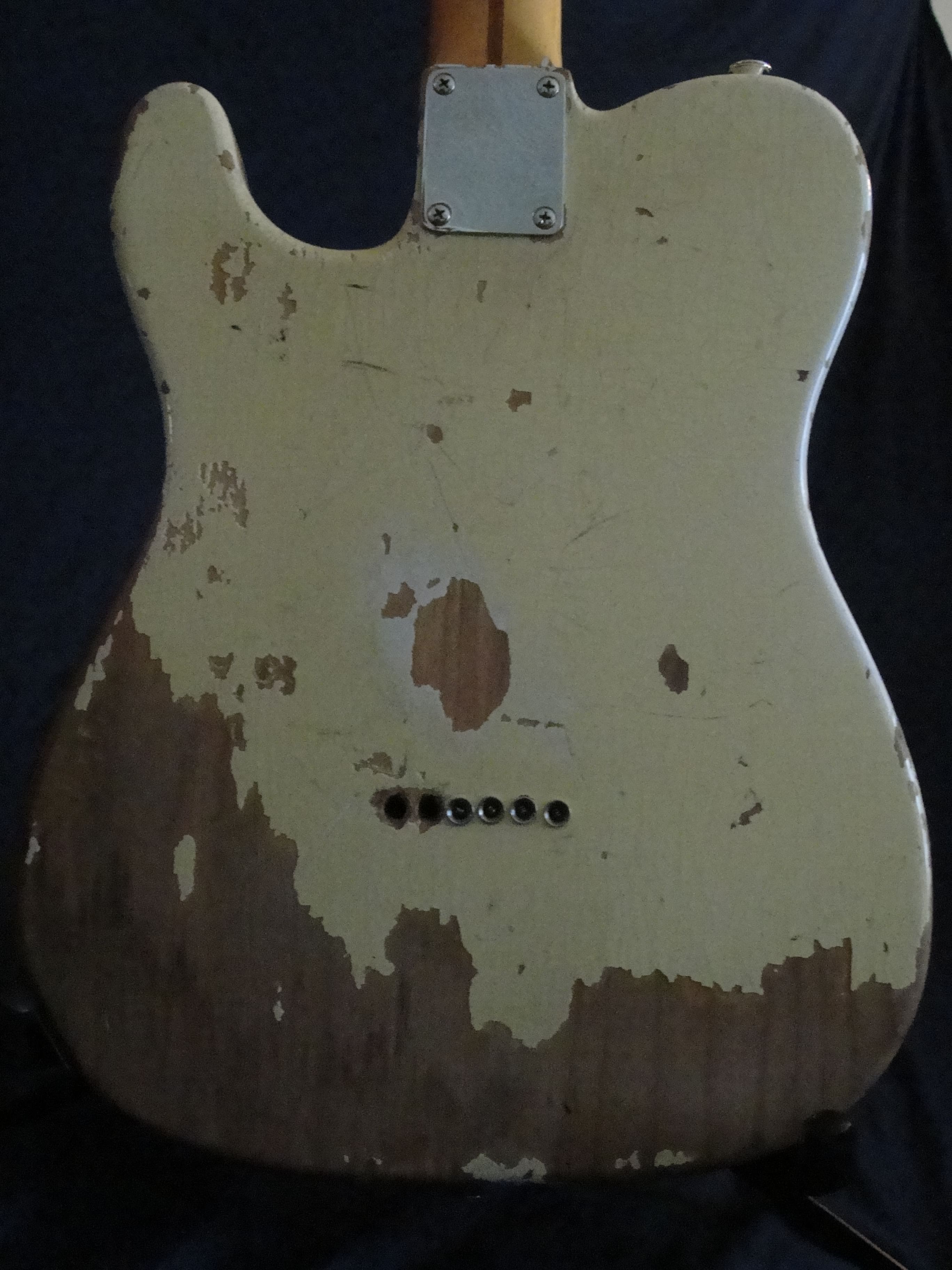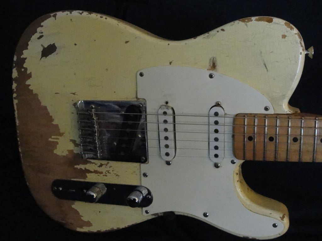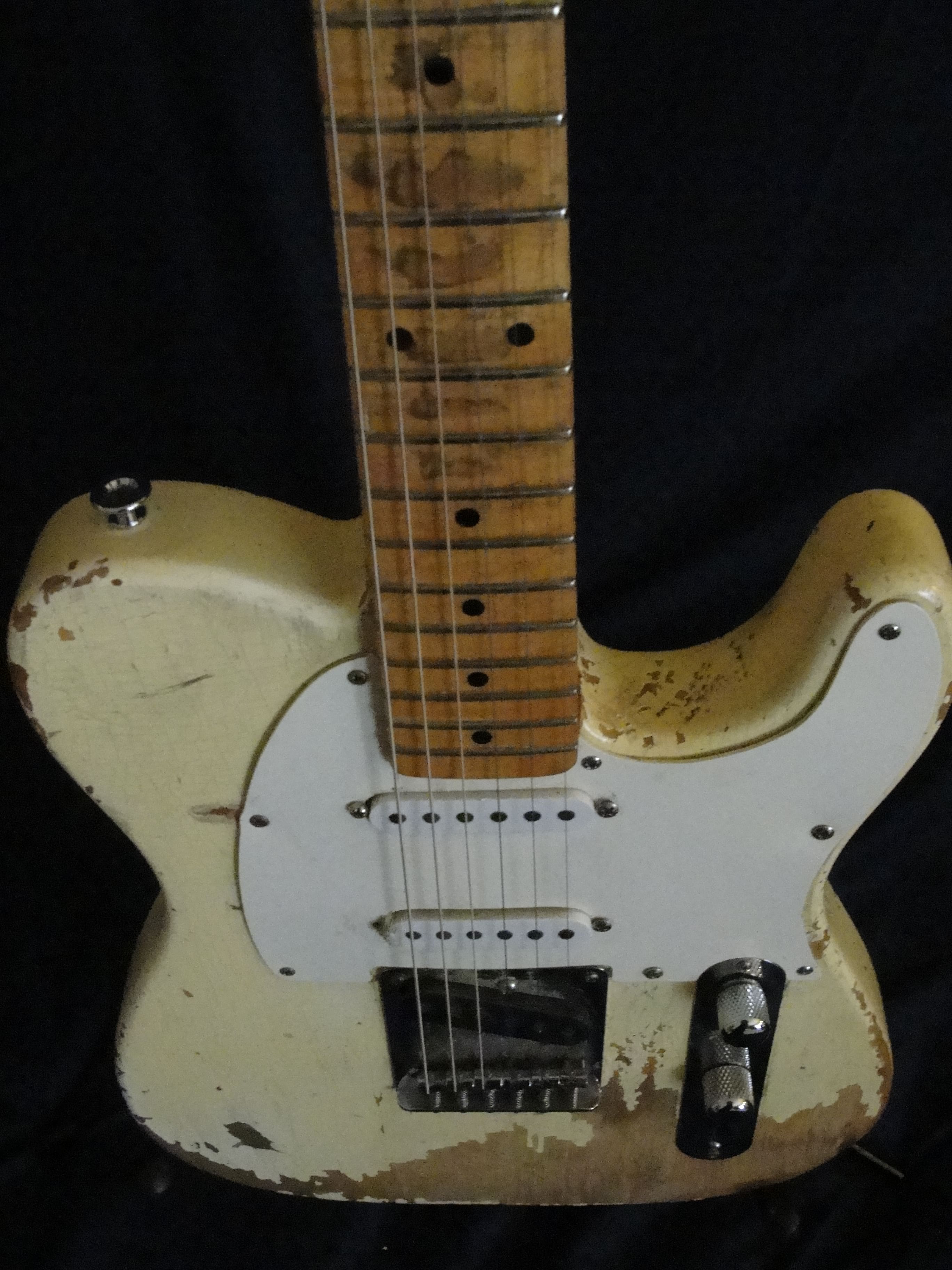 The Tele, which he acquired in 1980, is kind of a mutt. The super chunky neck is from Mighty Mite, and the body is most likely something similar, with Strat style pickups. This has been his go-to for slide playing for years, with a brass nut and the action set high. The thin yellow finish at this point is all but obliterated, but it tells the story of a life on the road perfectly; the checking even resembles a map of imaginary counties or states! I learned to play using this guitar and one of his old Super Reverbs back when I was a teenager.