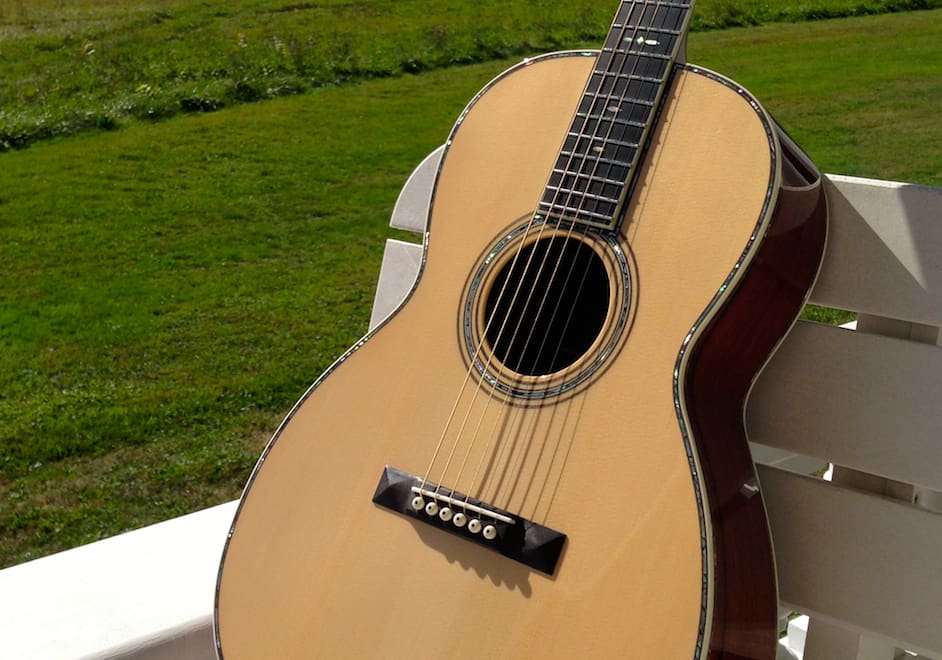 The guitar boasts hide glue throughout, a hand carved ebony rod neck, real shell everywhere, exacting dimensions for top thickness, bracing and binding inlay. The the wonderfully figured, perfectly quartered old growth Brazilian back and sides are paired with a stiff, silky red spruce top. If there ever was a true Authentic, this is it. And the sound? In this guitar, I hear the both hollow, woody resonance of the late ‘20s 12-fret Martins and the clear, clean trebles of a mid-‘40s tapered brace guitar.