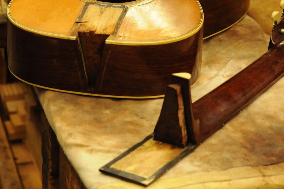 Dan Pacenti starts the neck removal process, trying to be as delicate as possible so not to damage the sides.