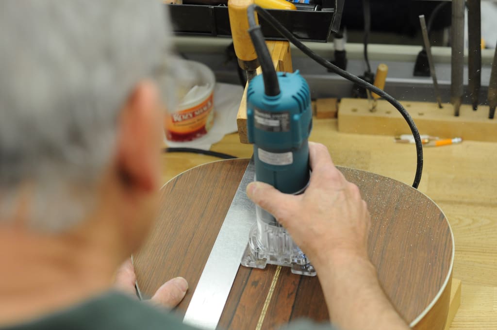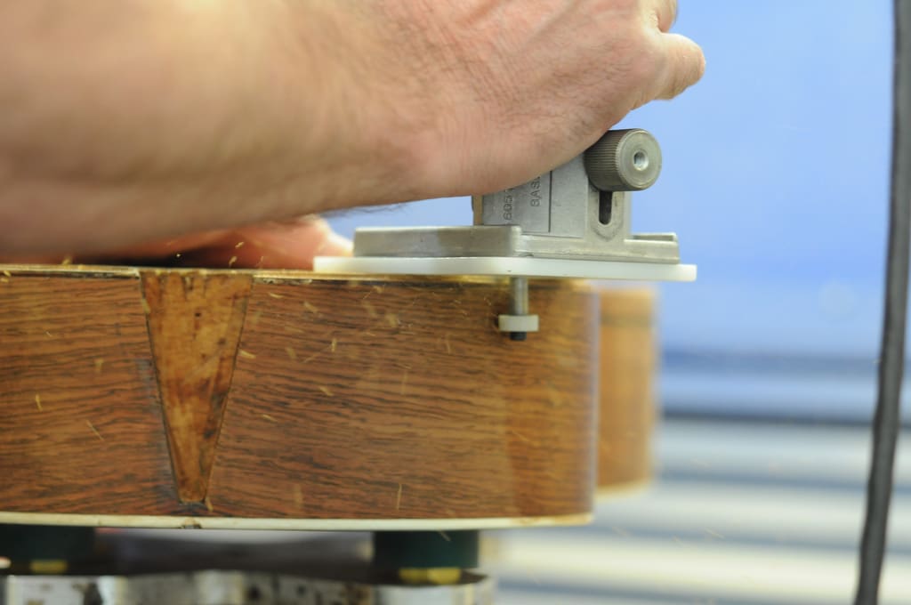 Routing out the old ‘chainlink’ backstrip to make way for its style 45 replacement.