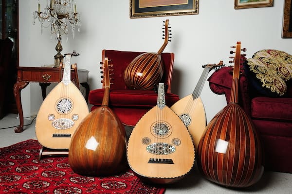 JB: The oud is the grandfather of the lute and the father of the guitar. It’s a Persian instrument. It dates back 2,500 years. It’s played with an eagle’s feather, which we call a mizrab, in Turkish, or risha, in Arabic. It originally had four double strings. The four double strings were tuned in fourths, because fourths were the perfect symbol for one’s life, their soul, they believed.