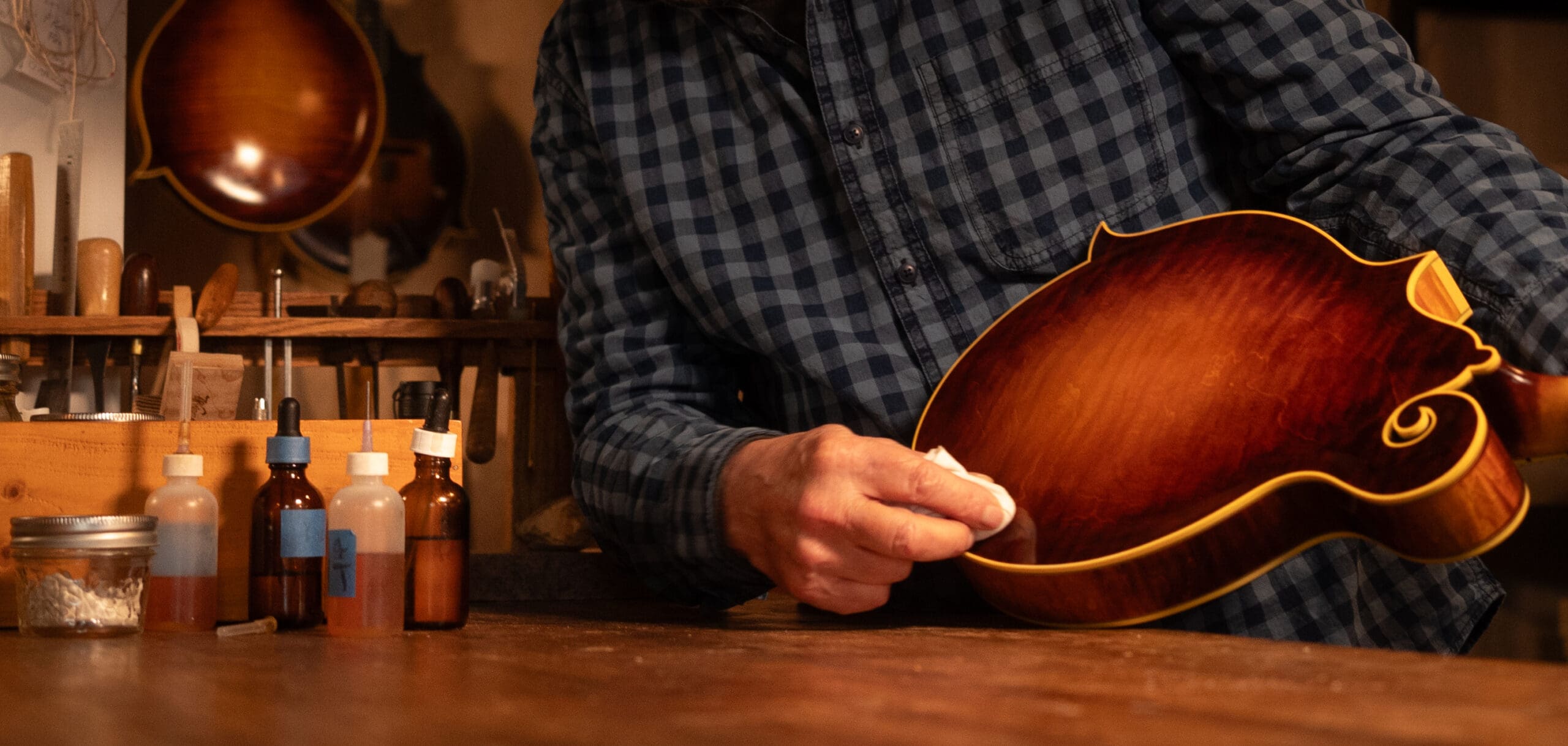 Fast-forward to 2014, and Will had relocated to western North Carolina, living on his own in a house with a workshop, lots of tools and lots of aged tonewoods. Wes was in his early 30s and living in Florida, but he was open to a change of scene. The two began exploring the idea of making mandolins, and soon Wes joined his dad in North Carolina.