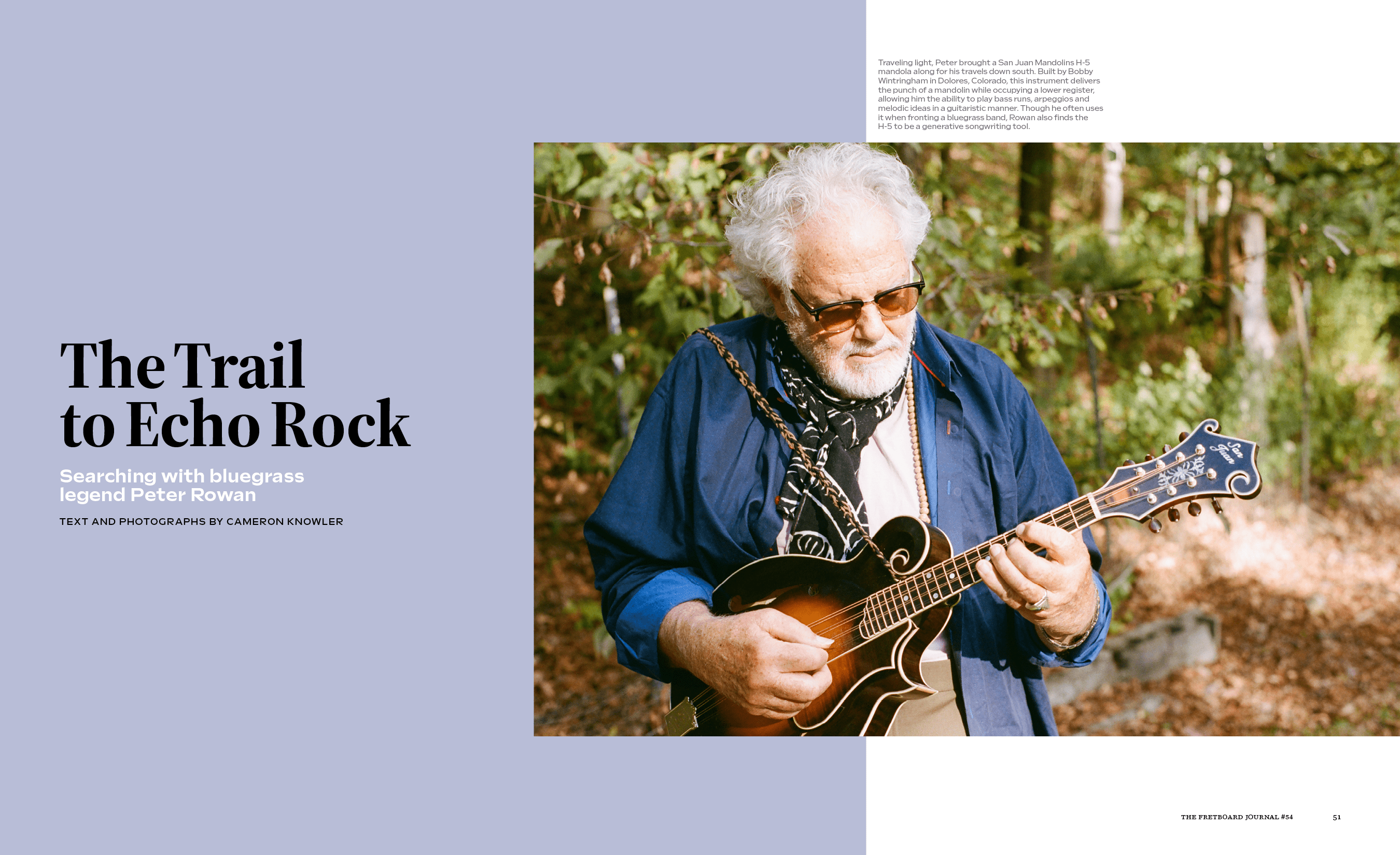 Bluegrass stalwart Peter Rowan and writer/photographer Cameron Knowler go deep and talk about Rowan’s time with Bill Monroe, the magic of Clarence White, the guitars that meant the most over the years, and spirituality. Included are all-new photographs of Rowan taken by Knowler, one of Rowan’s illustrations, and shots of his cherished Preston Thompson guitars.