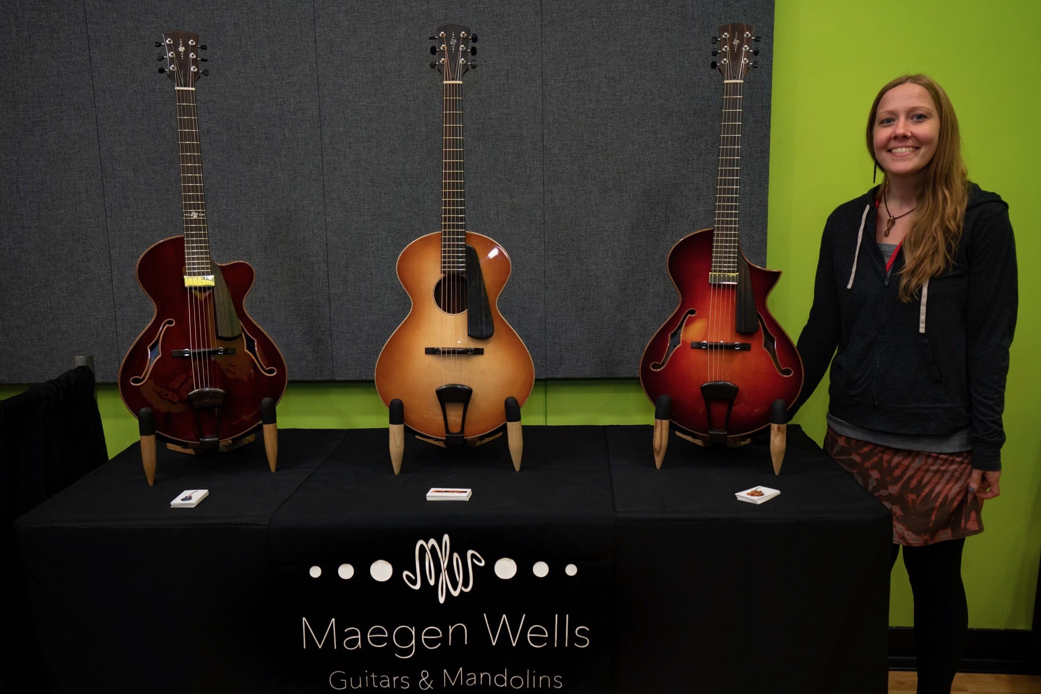 Maegan Wells is known for her beautifully crafted archtop guitars and mandolins made in her one-person shop in Northern California.
