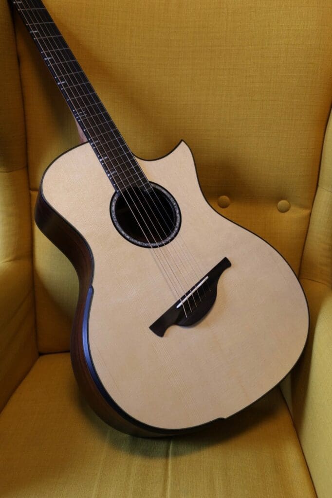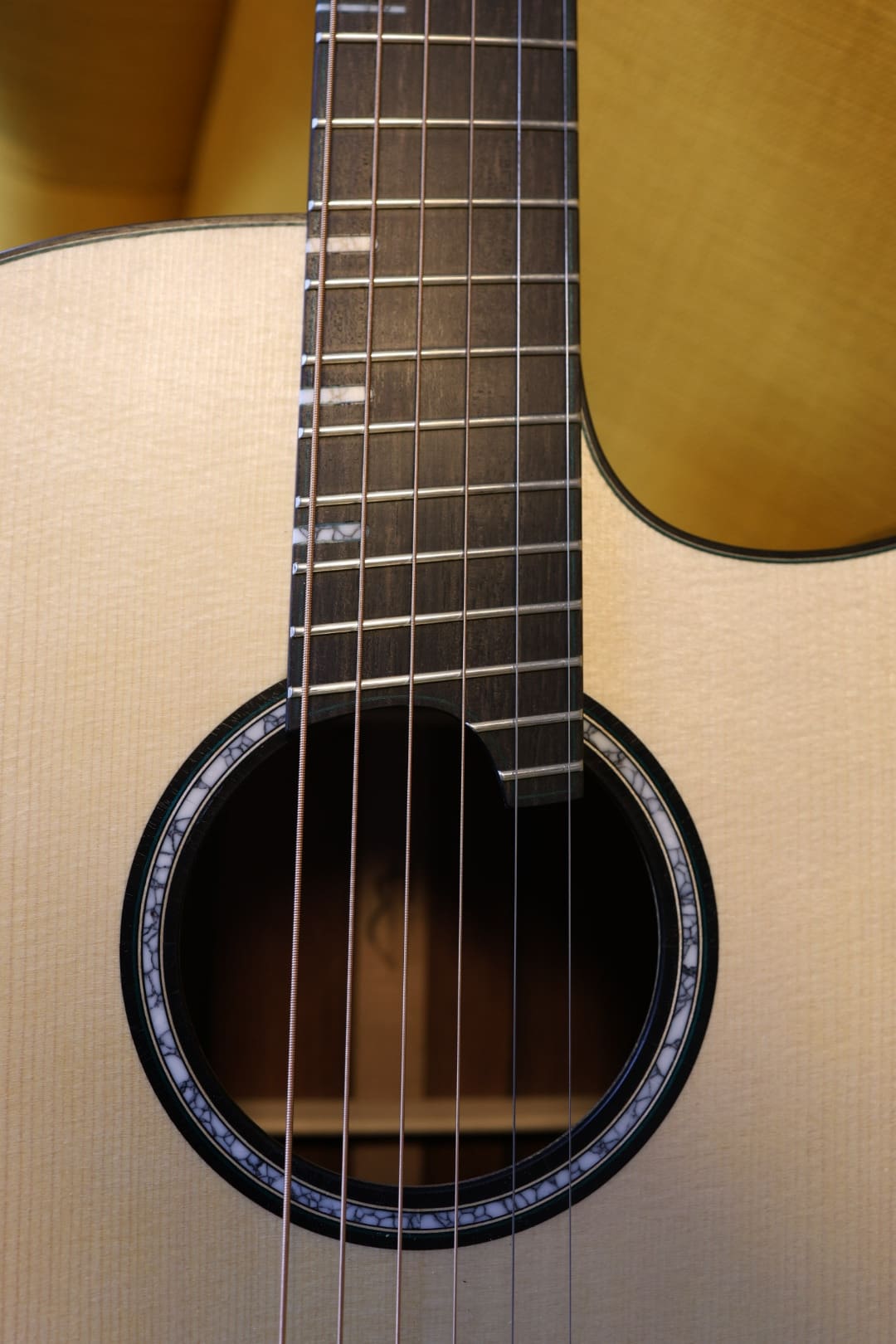 Max Monterosso builds beautifully detailed steel string guitars, harp and electric guitars out of his one-person shop in the Veneto region of Italy.