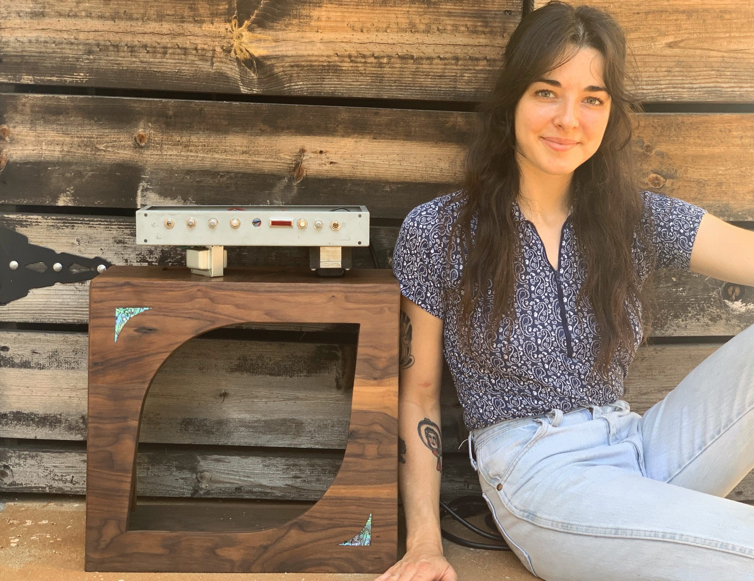 Picture above: A couple of the vintage amps currently on Fazio Electric’s bench. Below: Fazio with her new cabinet design and soon-to-be-completed chasis.