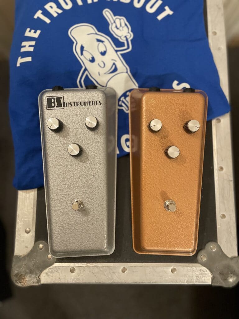 Above: listener Brannon’s Harmony Model 200; below: Yann’s (Body and Soul Instruments) pedals.
