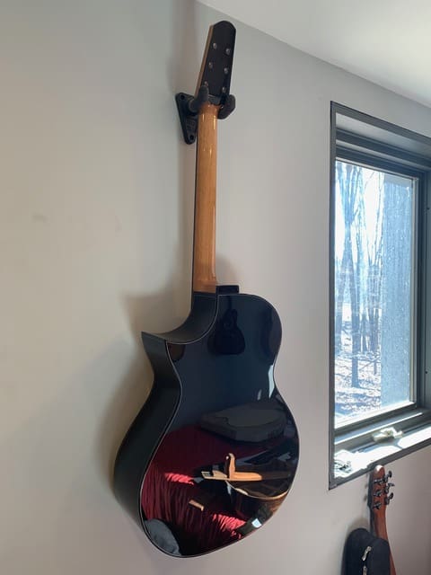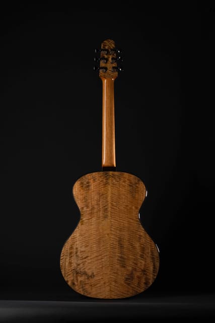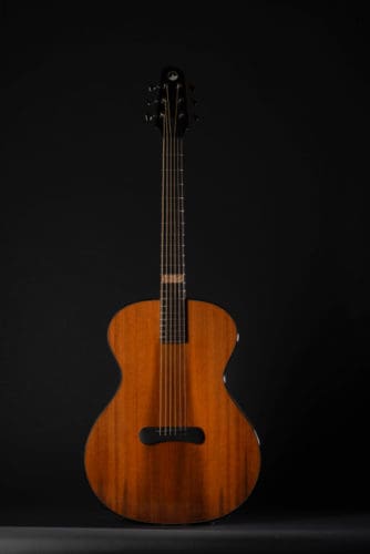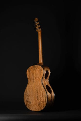 Guitarmaker Eric Weigeshoff of Skytop Guitars does things a little differently. As you can see, the acoustic guitars made by this NY-based luthier lack a traditional top soundhole. Relying on side soundports alone, his design is not only unique, it also shows off the beauty of his top wood choices.